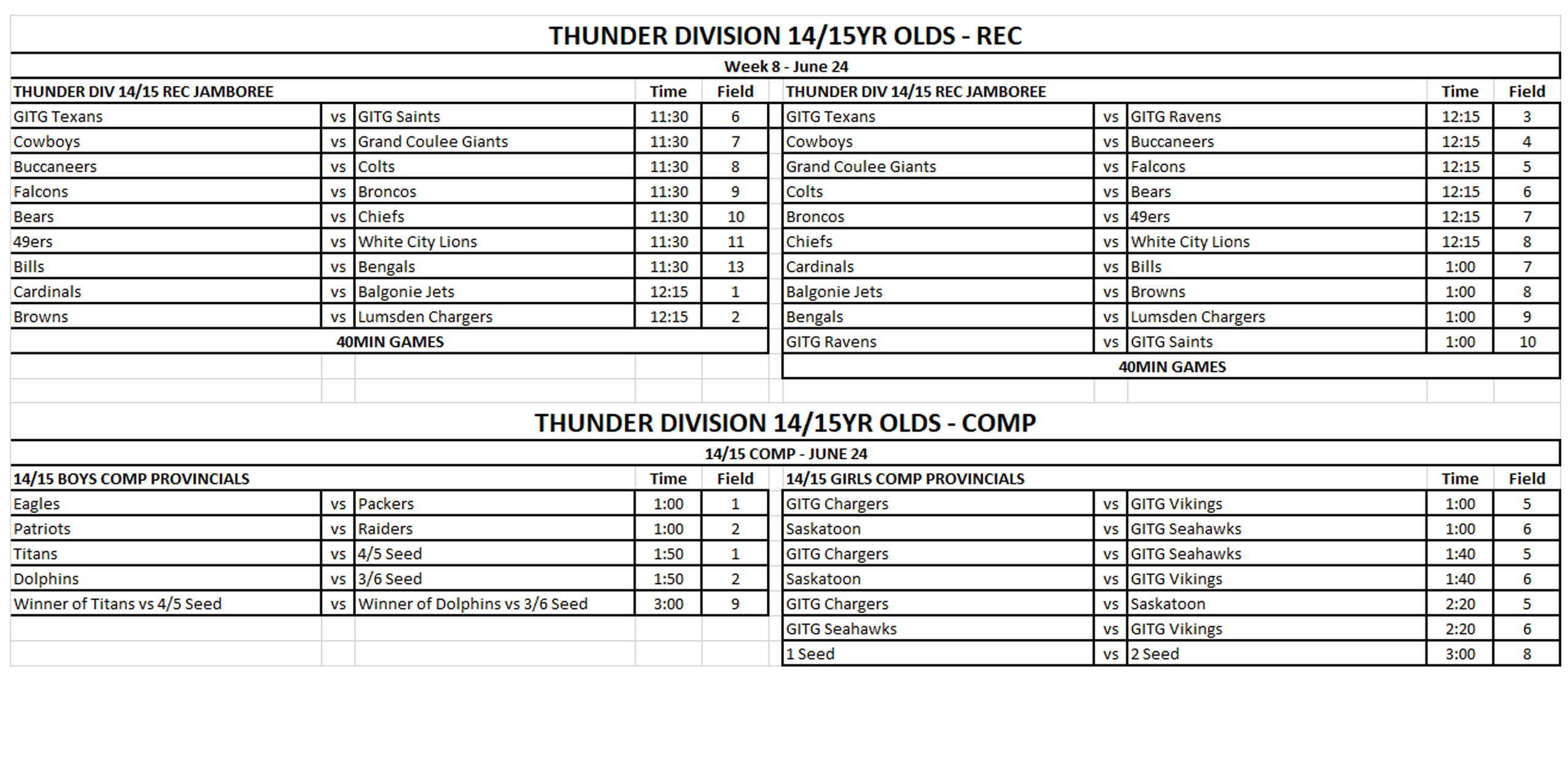 14/15 Thunder Division League Schedule